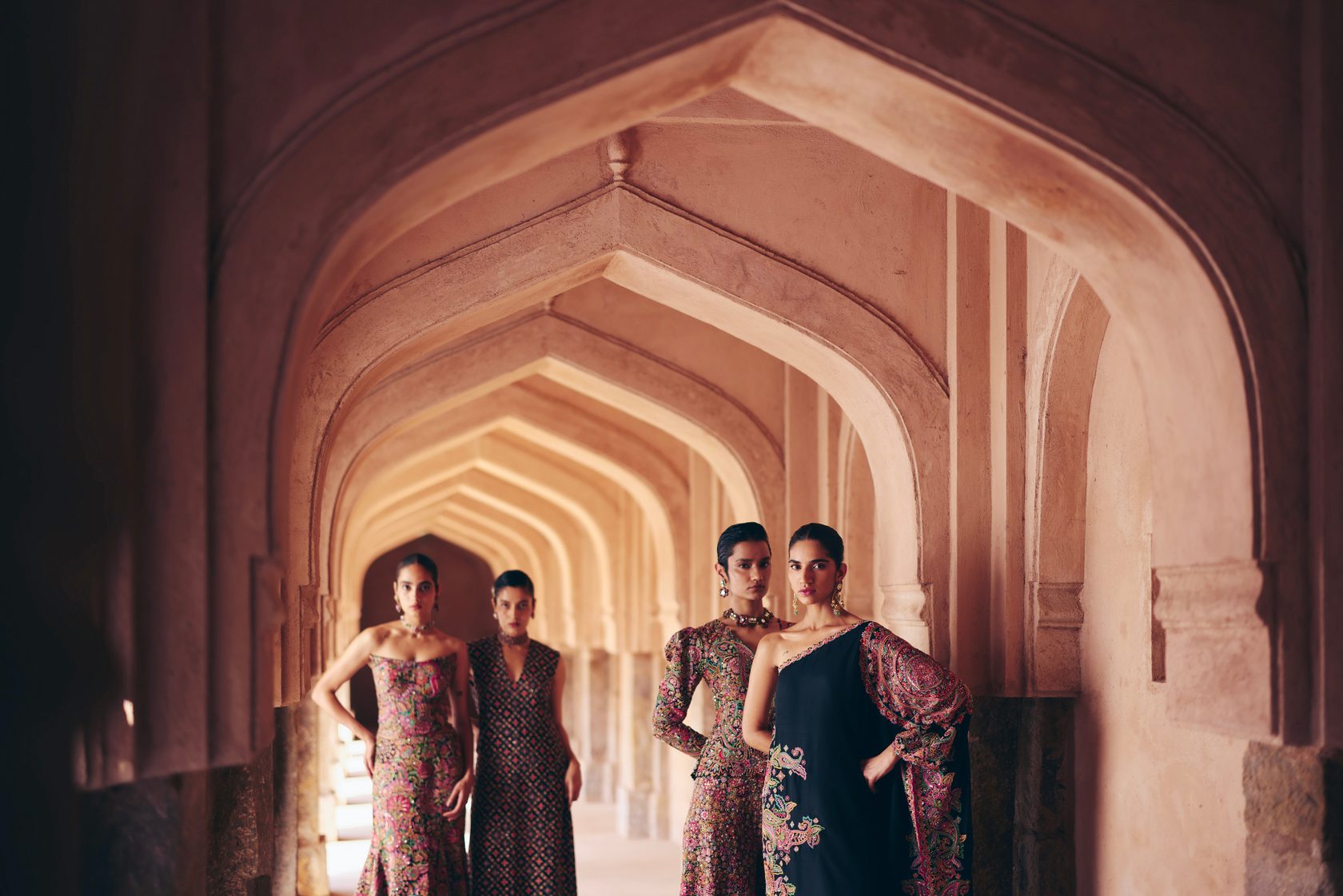 "Mirrored holds a special place in my heart, as the use of twins could symbolize mirroring, symmetry, and duality, which could be reflected in the designs, patterns, or the overall theme of the collection. What we present to you is a curated art collection, expertly documented by exceptional talent, infused with a sense of immense pride.” - Mrunalini Rao