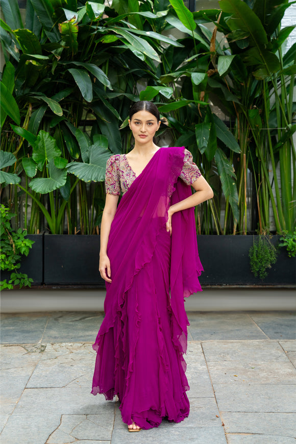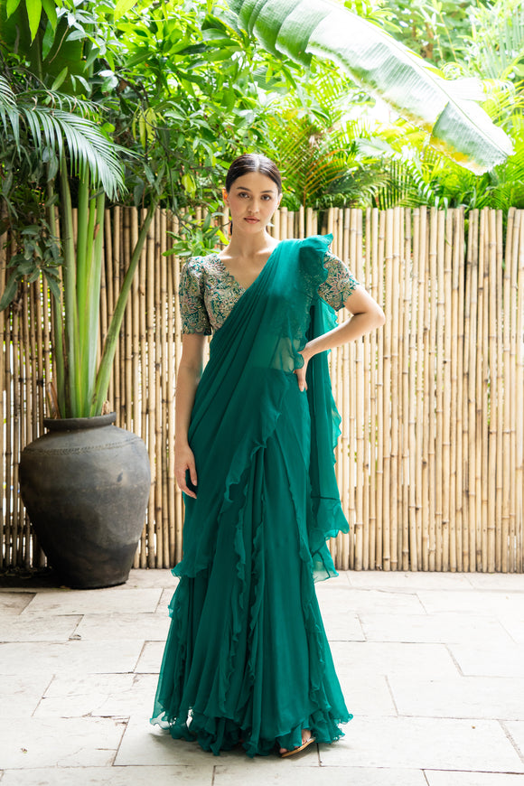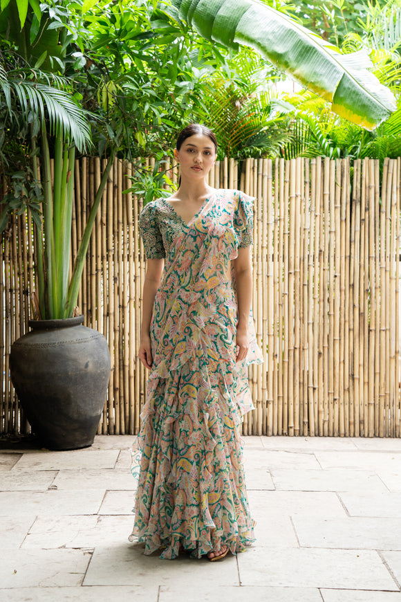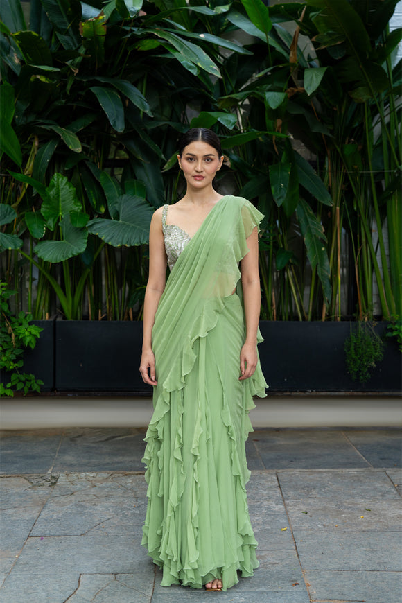 Ahilya Ruffle Lehenga Saree Set