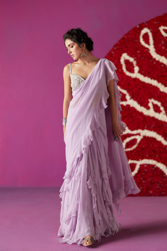 Ahilya Ruffle Lehenga Saree Set